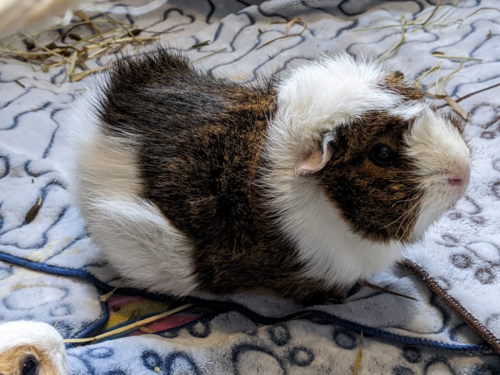 Callie was adopted at about 3.5 years old, so she started out a bit more independent and reserved compared to the younger members of the Pigcasso crew. However, she came out of her shell much more with the help of her new bonded piggy sisters.