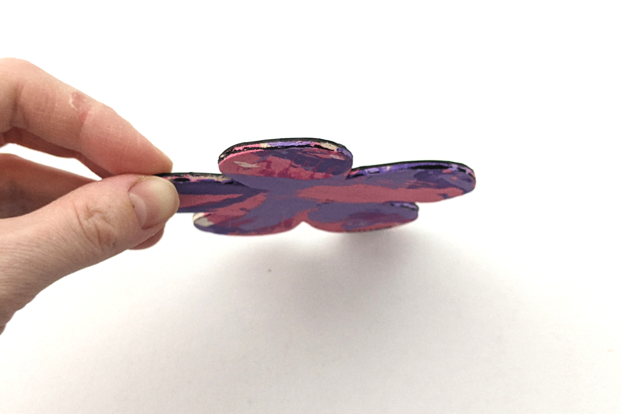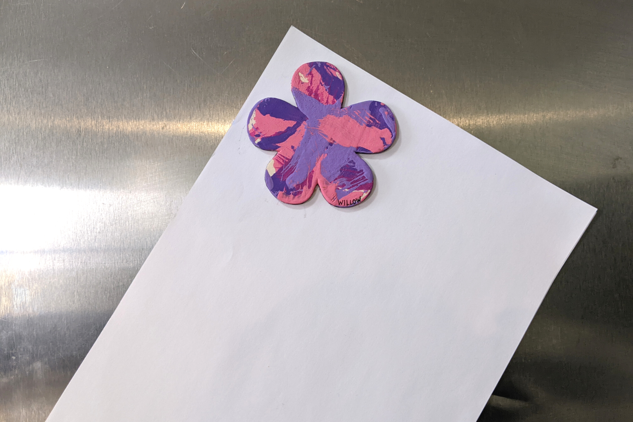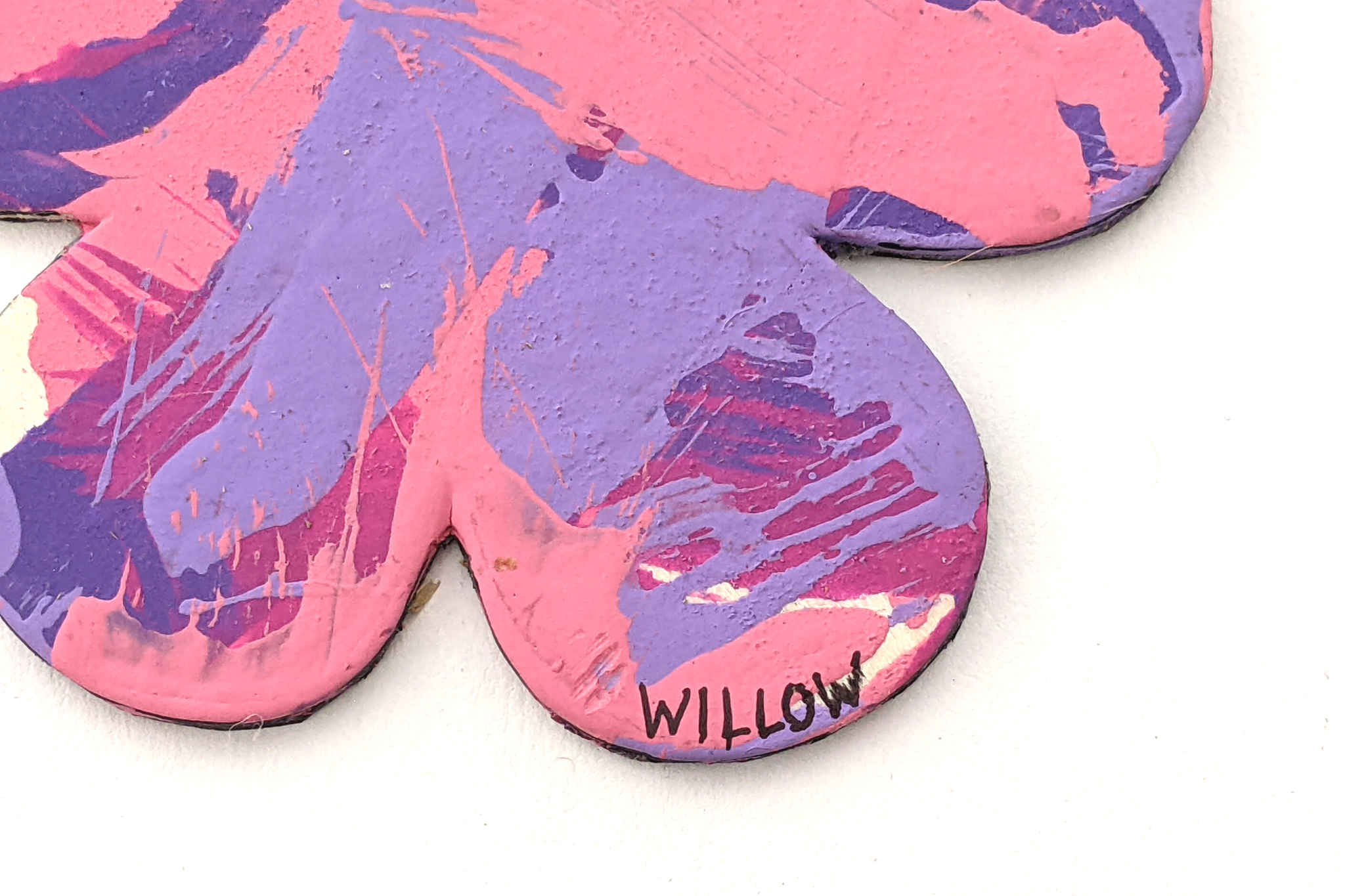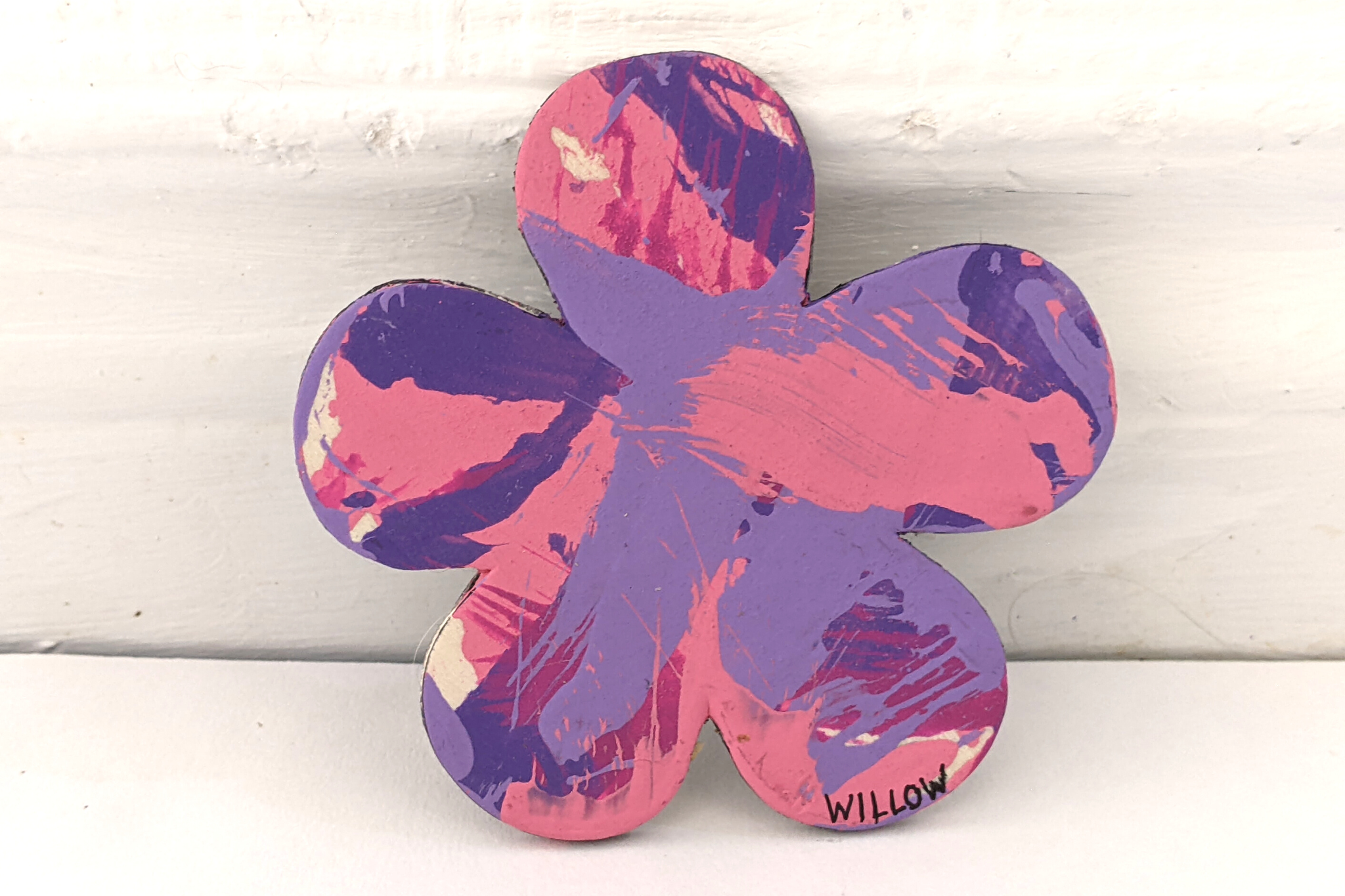 Magnet paintings are so cute and fun to display on the fridge, lockers, or any other metal surface. This adorable flower-shaped magnet features multiple shades of pink and purple and was made by Willow.