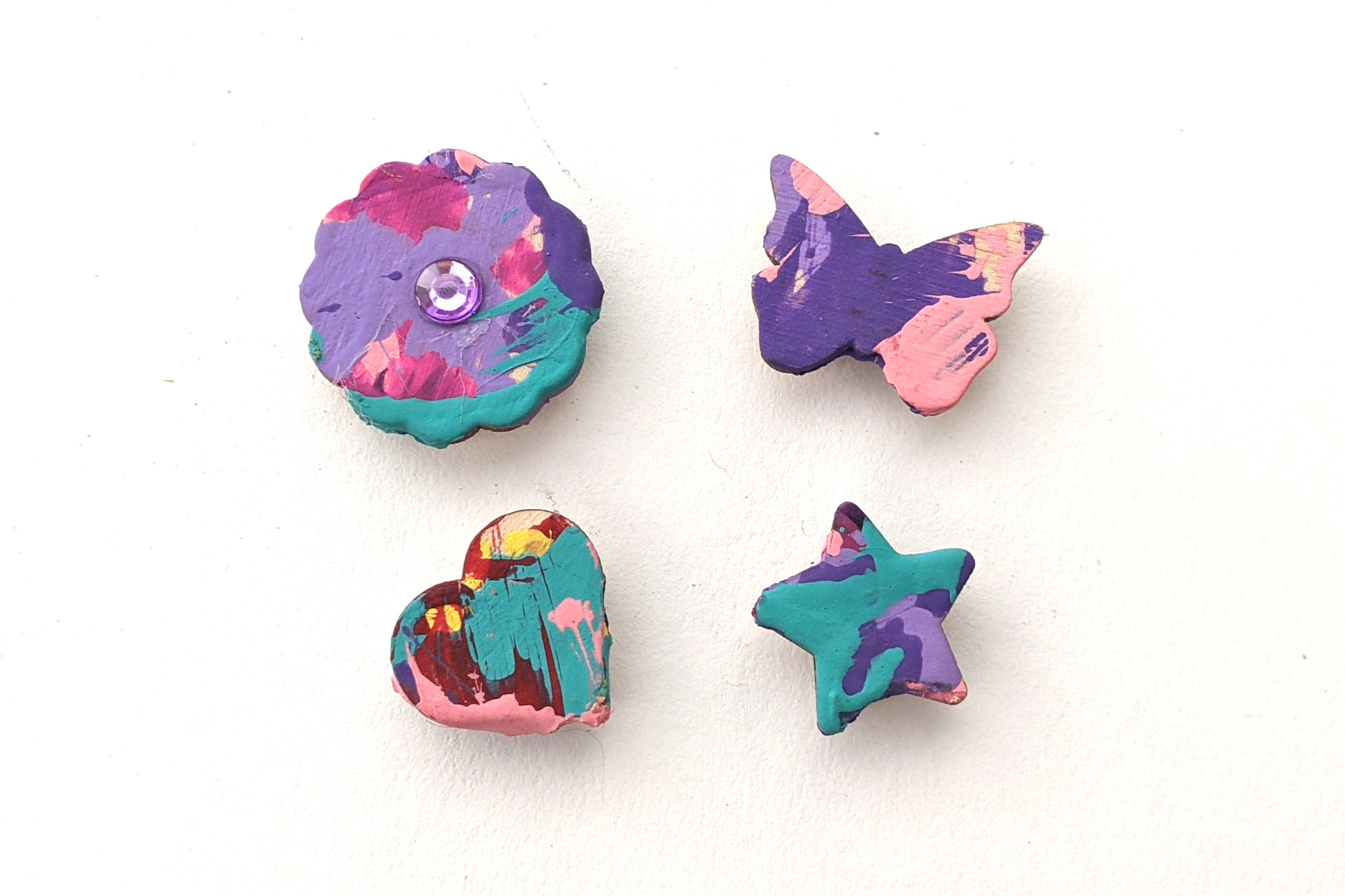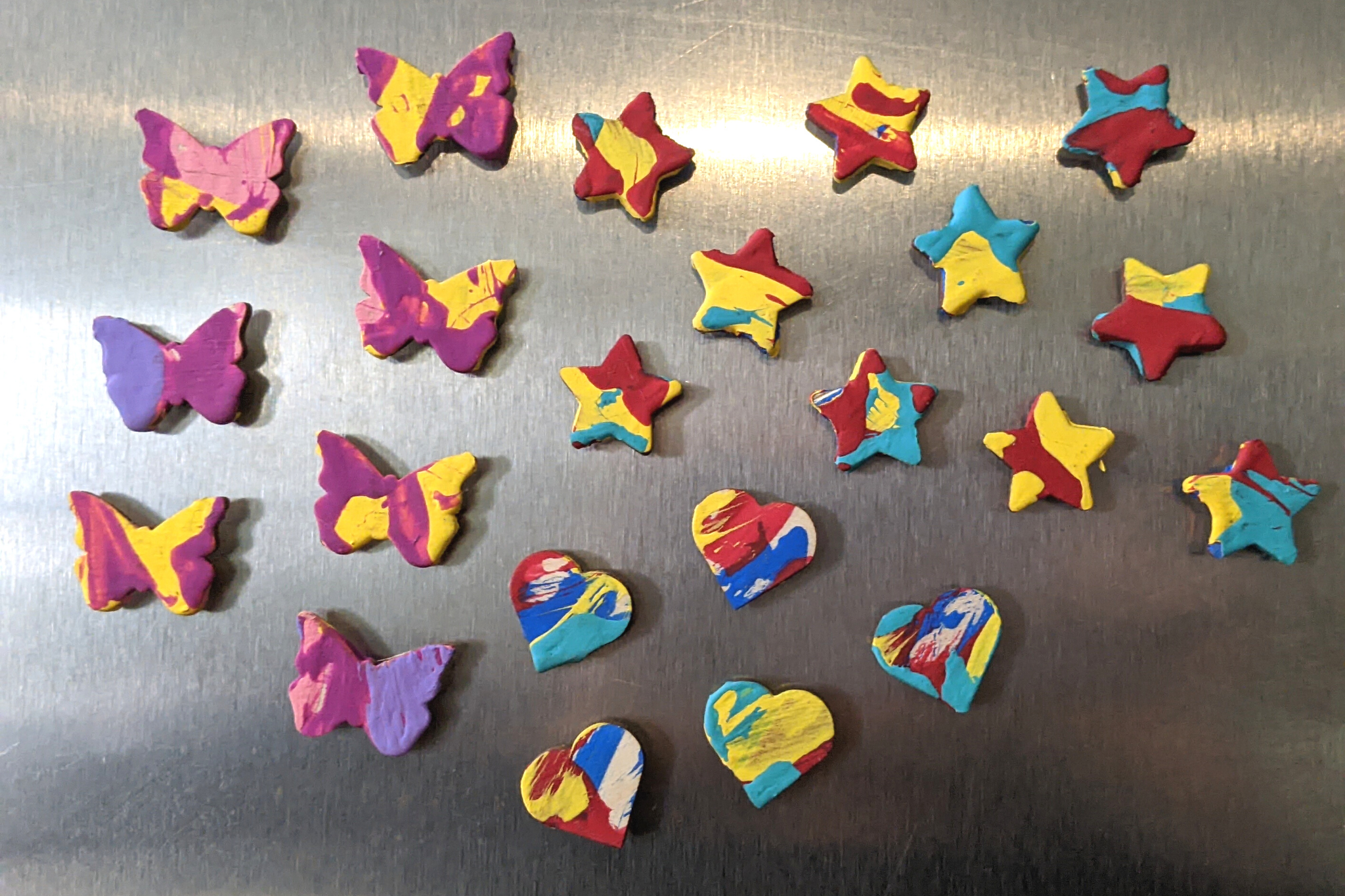 These cute and unique tiny magnets are so fun to make! It’s always a surprise seeing how they turn out, as every piece is one of a kind. Each magnet has its own unique colors and patterns.