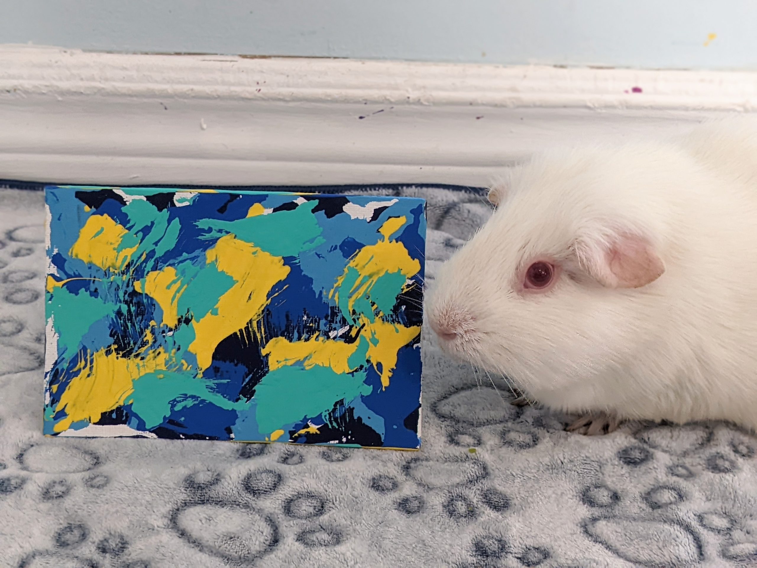 Ready to Ship 4×6 Blue, Teal, Yellow Guinea Pig Painting by Willow