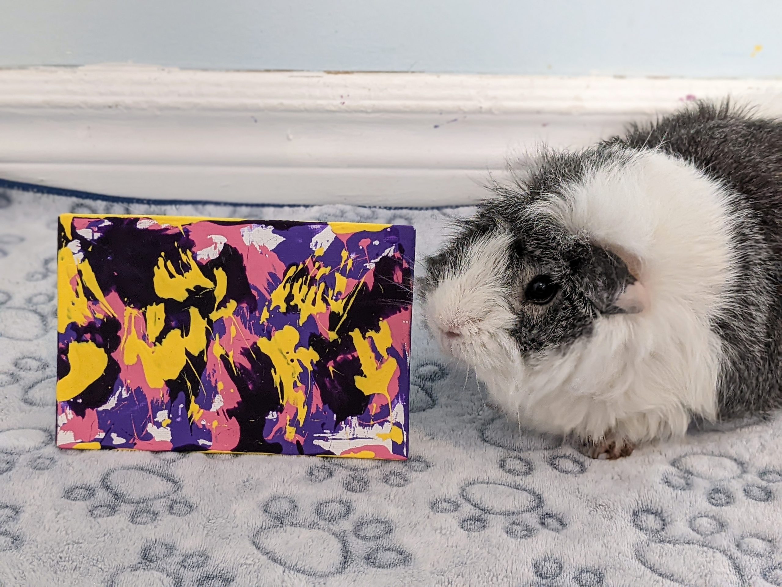 Ready to Ship 4×6 Purple, Pink, and Yellow Guinea Pig Painting by Pansy