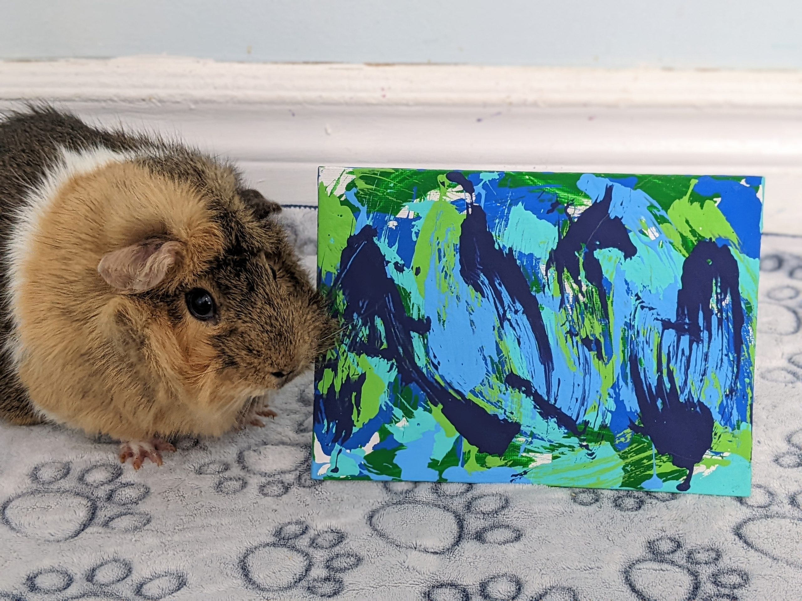 Ready to Ship 5×7 Blue and Green Guinea Pig Painting by Skylar