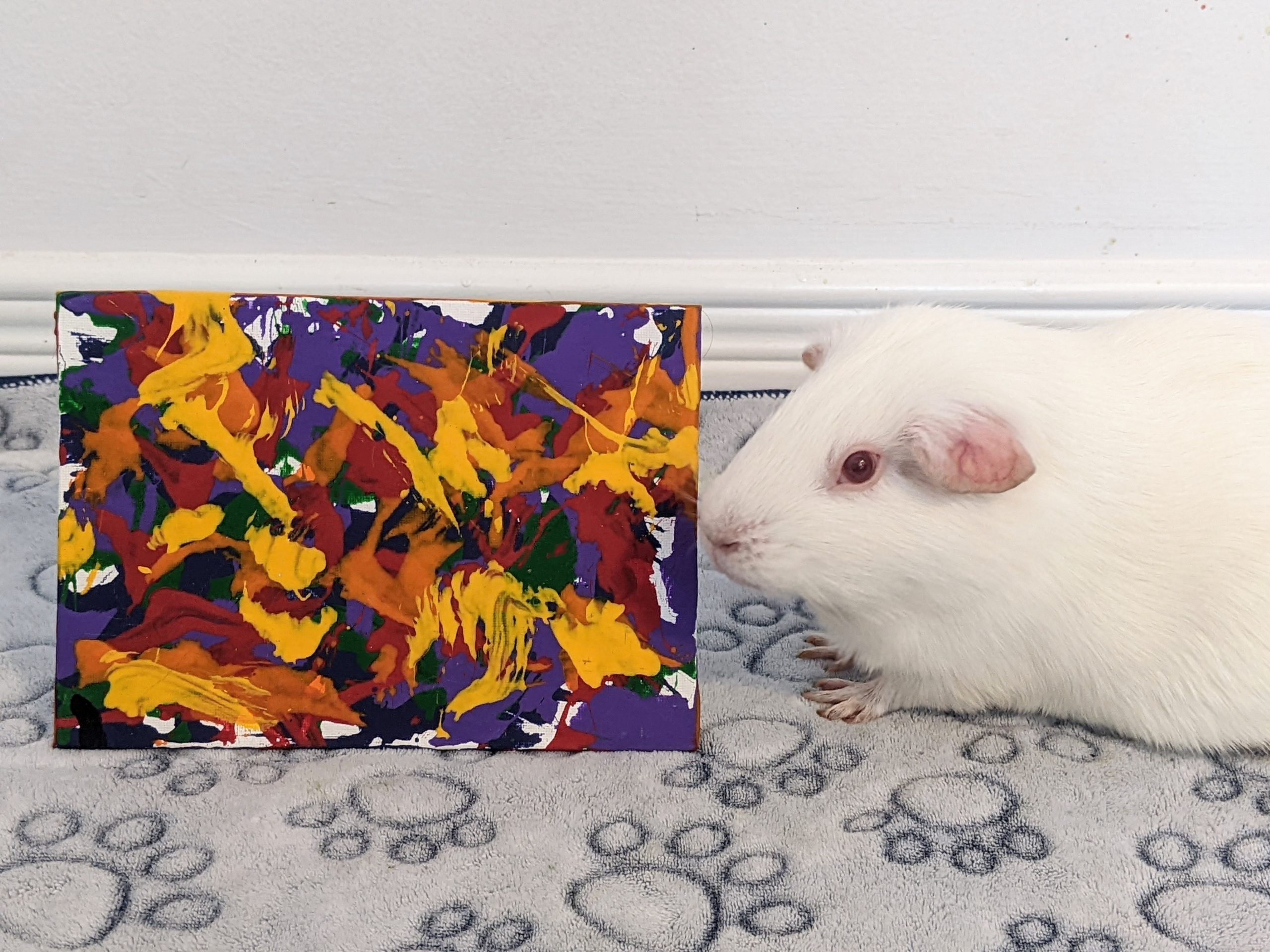 Willow had a rough start to life as an ex-lab piggy, but she has been living with me and her piggy friends over the last couple of years and has truly blossomed into an amazingly sweet and outgoing girl. I’m truly lucky to have her and show the world how colorful these sweet albino piggies are on the inside. ♥︎