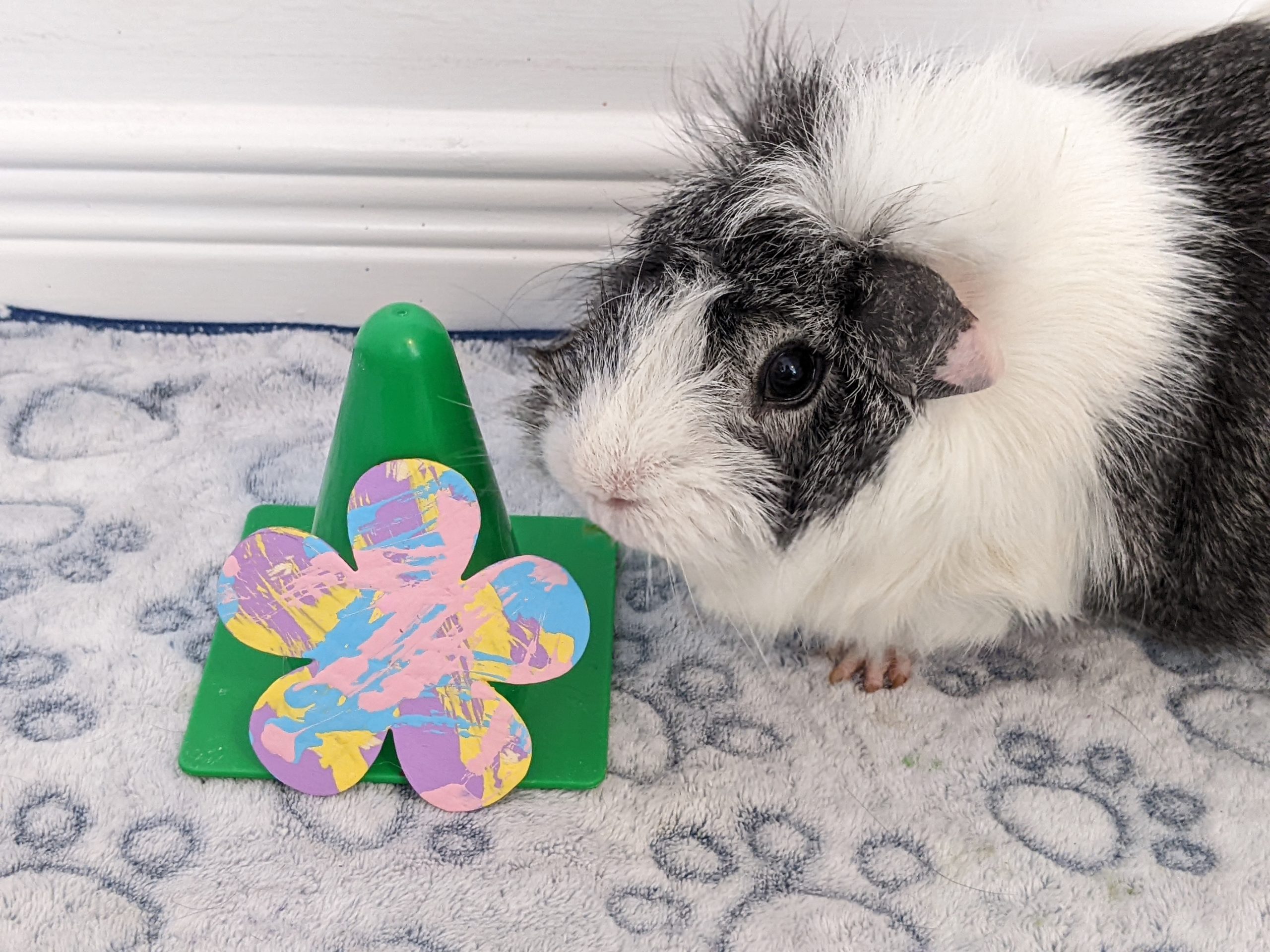 Pansy is a chill and laidback piggy. She is a super cute floof and she knows it! Pansy loves the princess treatment and can usually be found sprawled out on a fluffy bed.