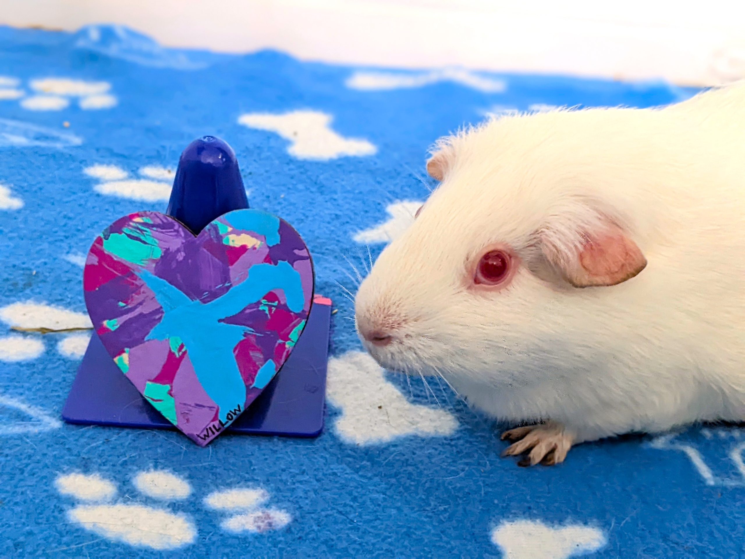 Willow had a rough start to life as an ex-lab piggy, but she has been living with me and her piggy friends over the last couple of years and has truly blossomed into an amazingly sweet and outgoing girl. I’m truly lucky to have her and show the world how colorful these sweet albino piggies are on the inside. ♥︎