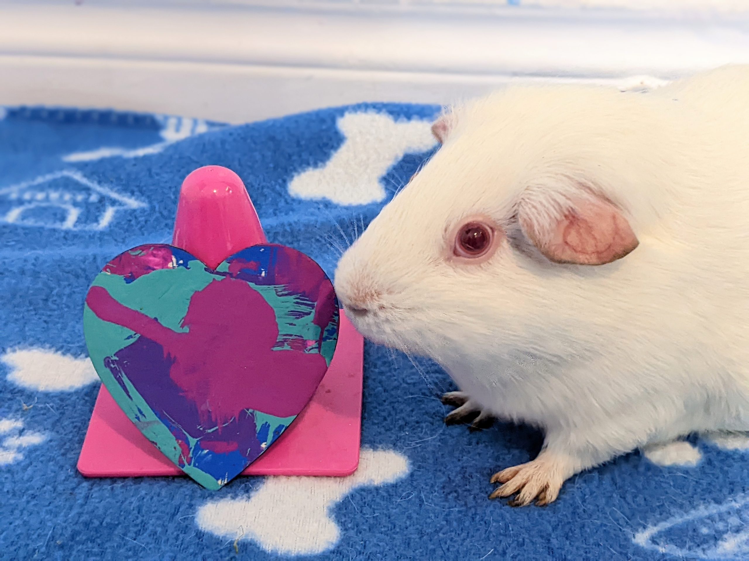 Willow had a rough start to life as an ex-lab piggy, but she has been living with me and her piggy friends over the last couple of years and has truly blossomed into an amazingly sweet and outgoing girl. I’m truly lucky to have her and show the world how colorful these sweet albino piggies are on the inside. ♥︎