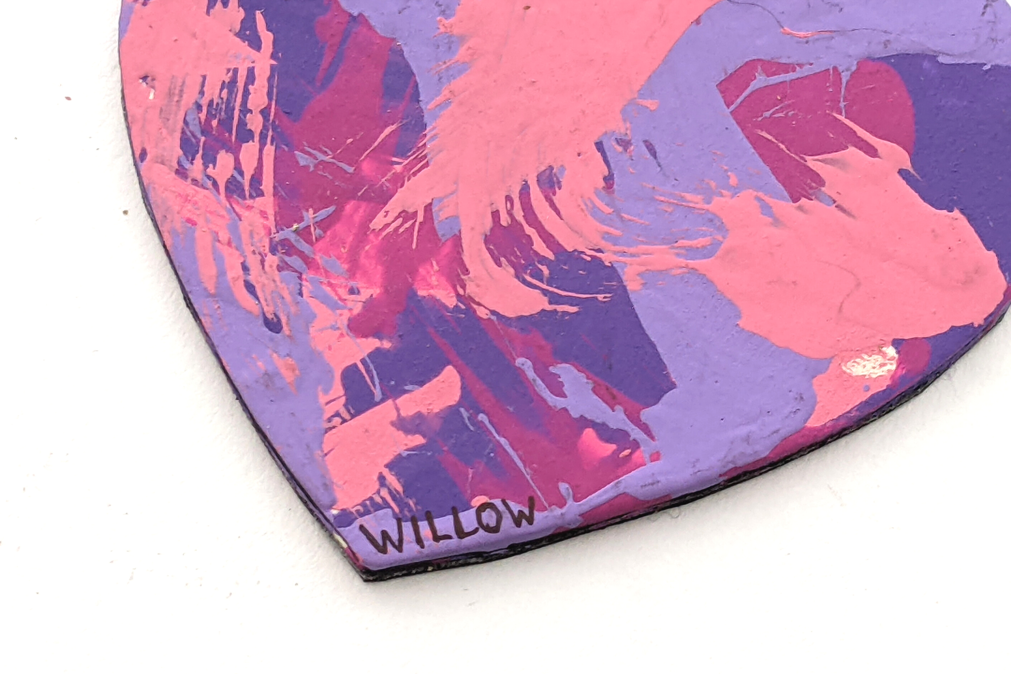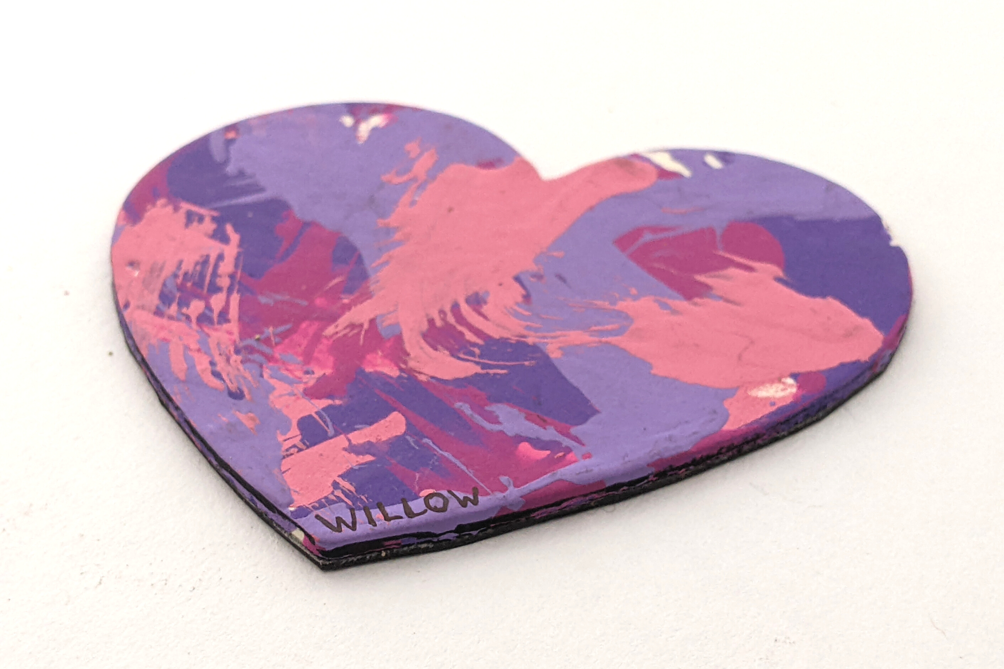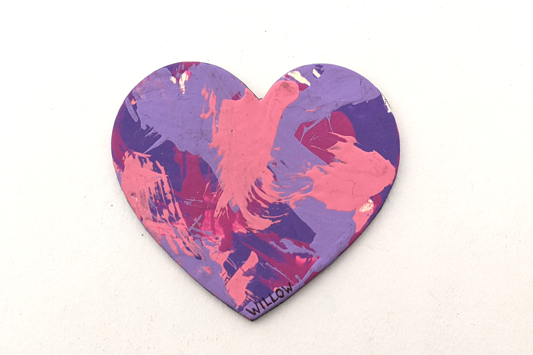Magnet paintings are so cute and fun to display on the fridge, lockers, or any other metal surface. This adorable heart-shaped magnet features multiple shades of pink and purple and was made by Willow.