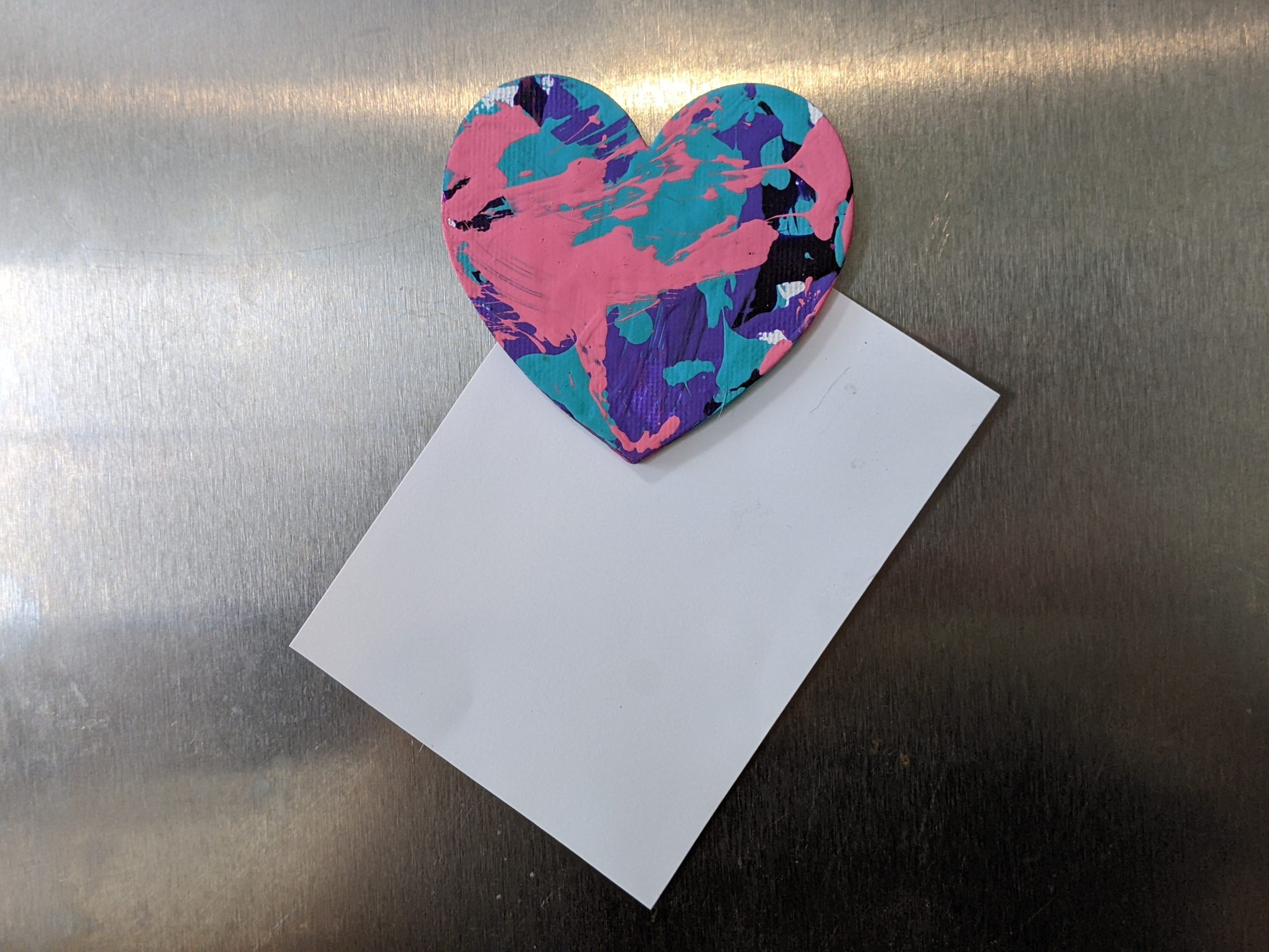 Magnet paintings are so cute and fun to display on the fridge, lockers, or any other metal surface. This adorable heart-shaped magnet features pink, purple, and teal and was made by Pansy.