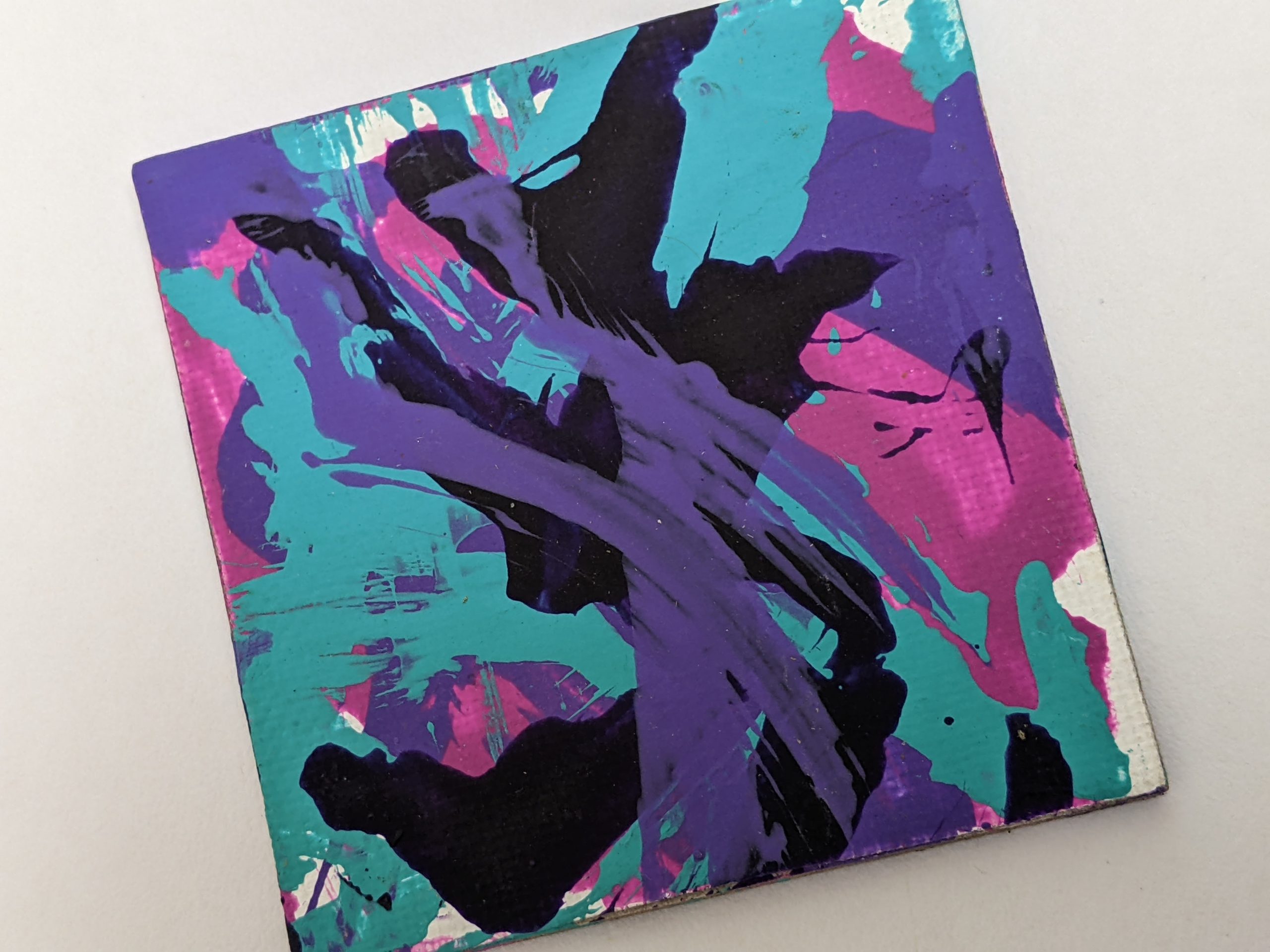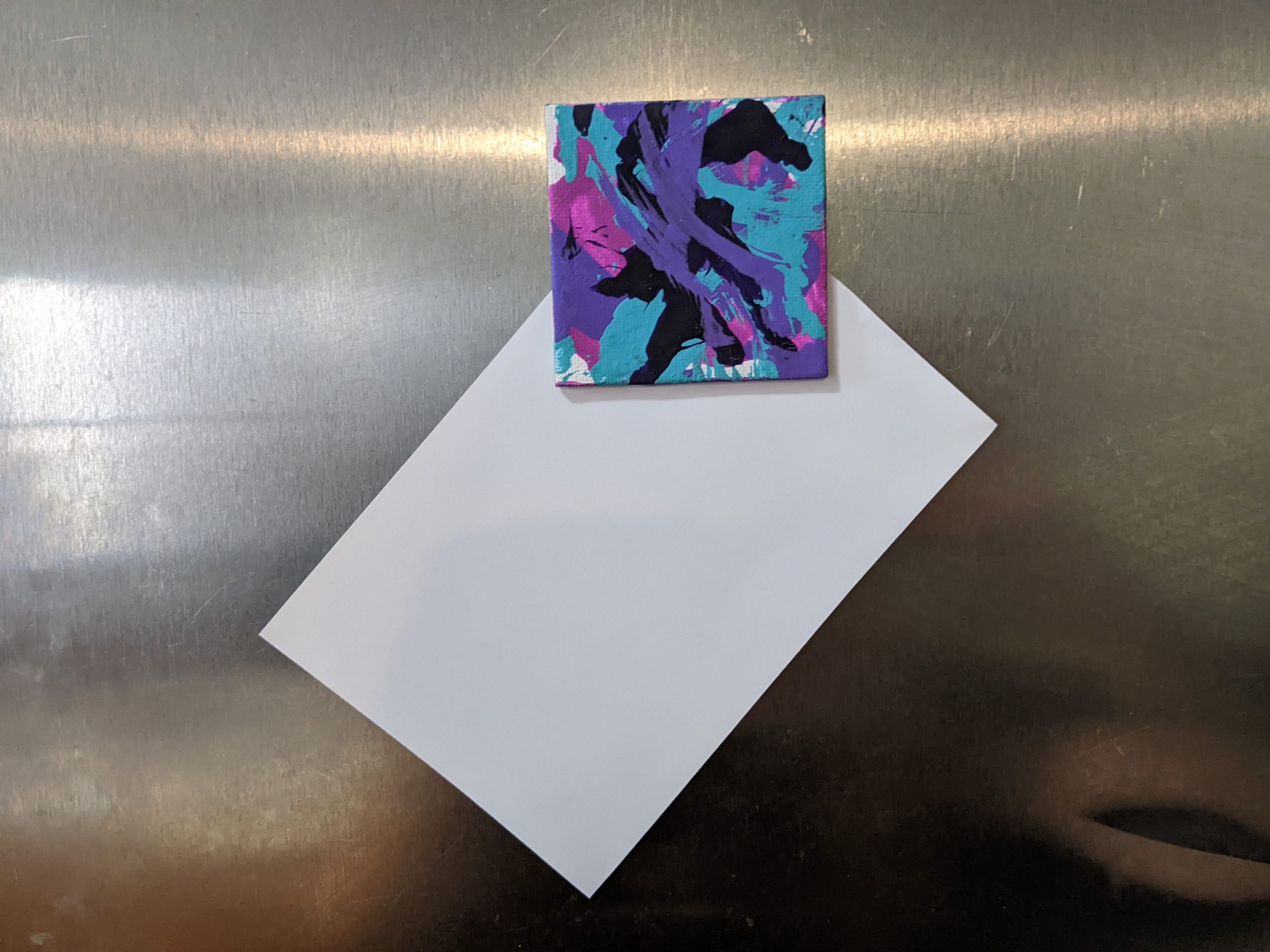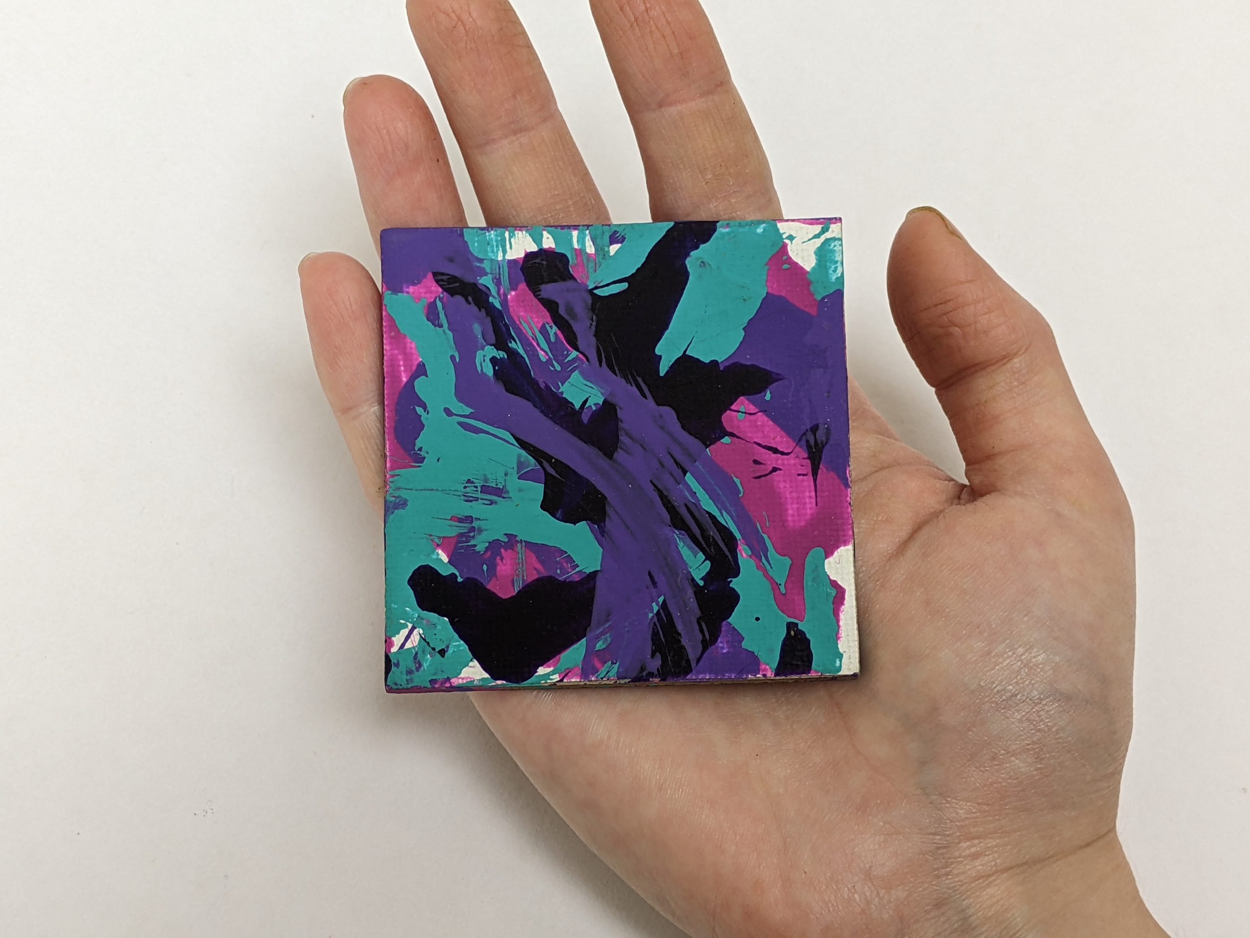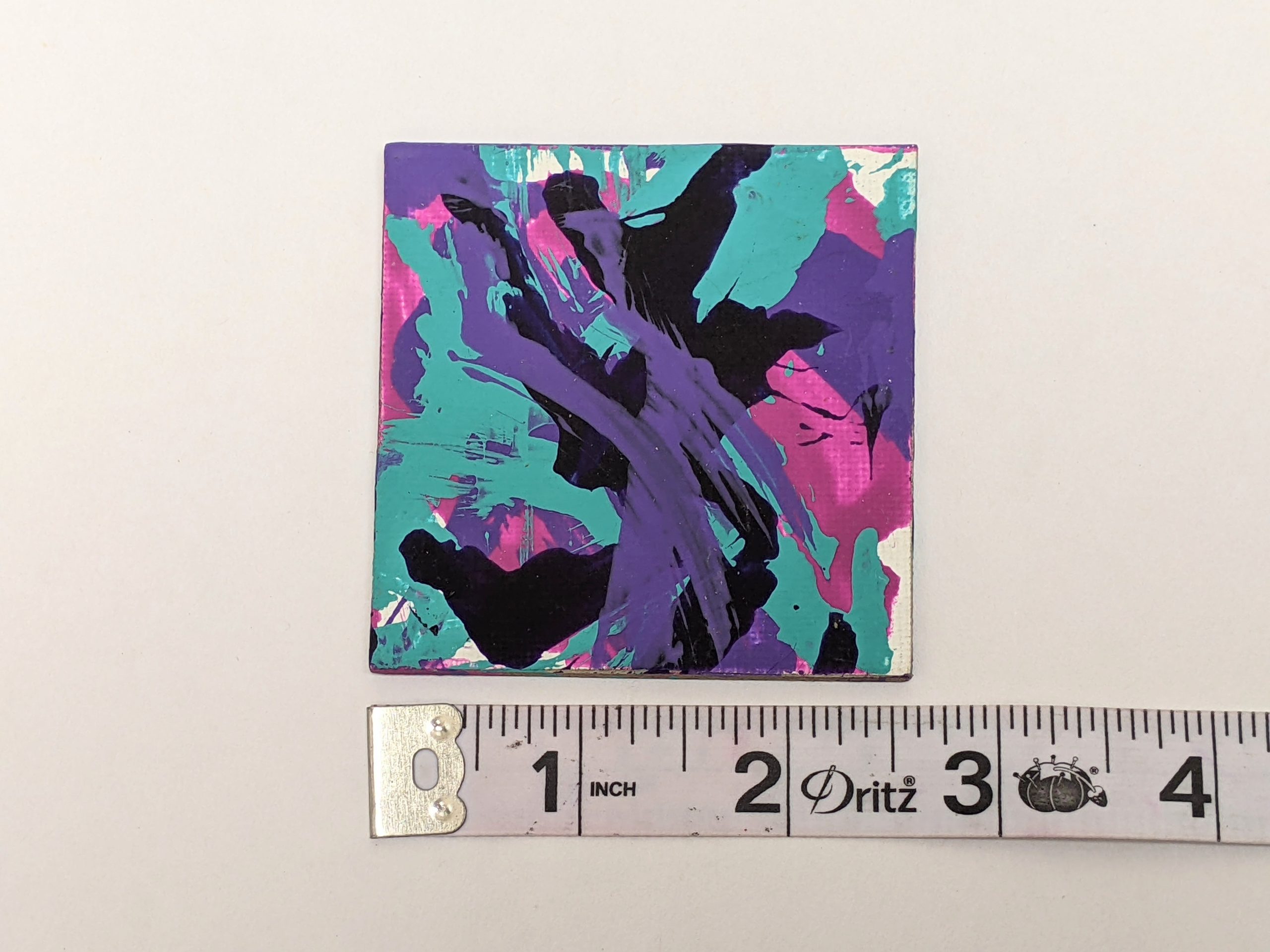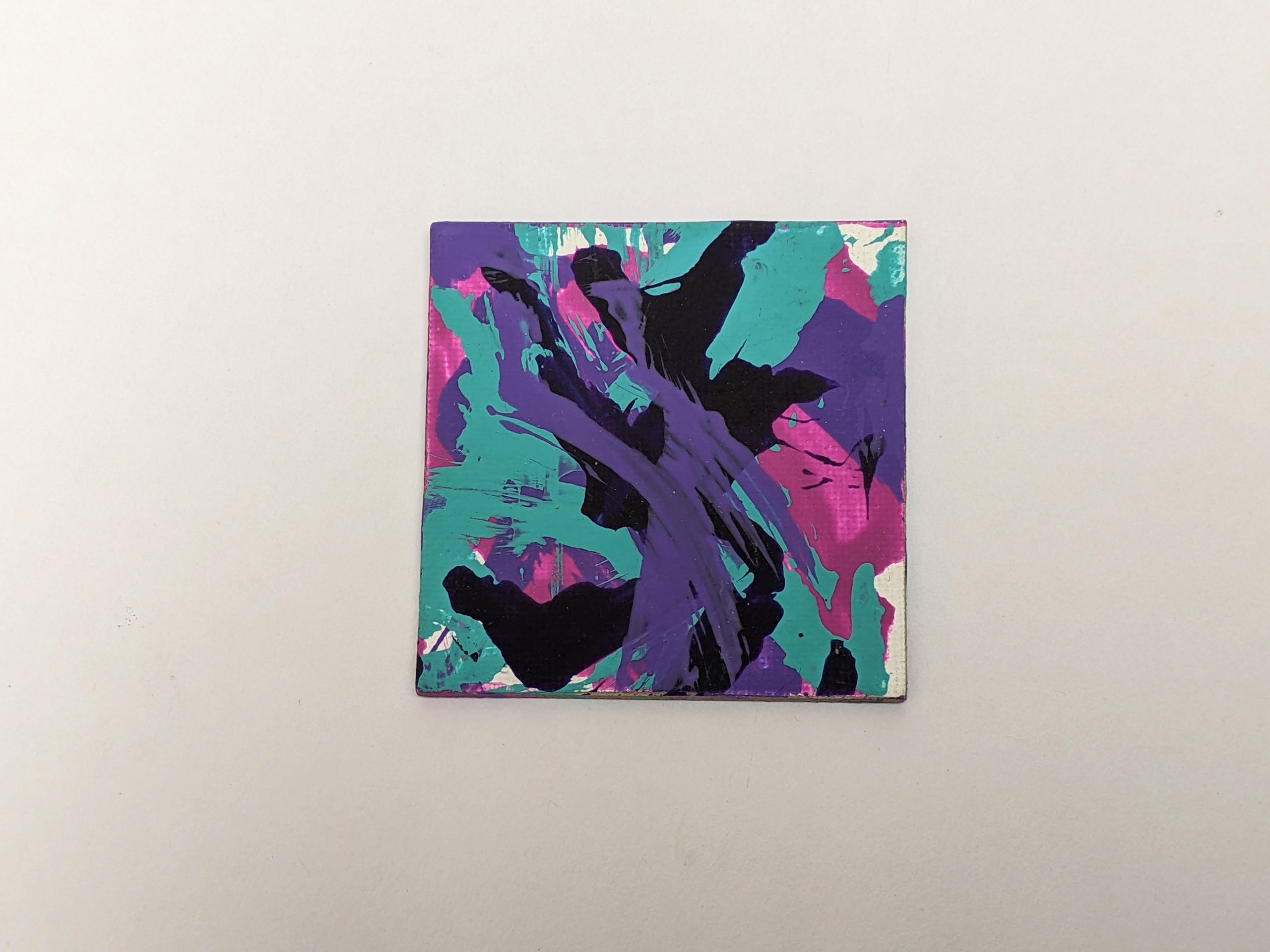 Magnet paintings are so cute and fun to display on the fridge, lockers, or any other metal surface. This pretty square magnet features teal, pink, and purple and was made by Skylar.