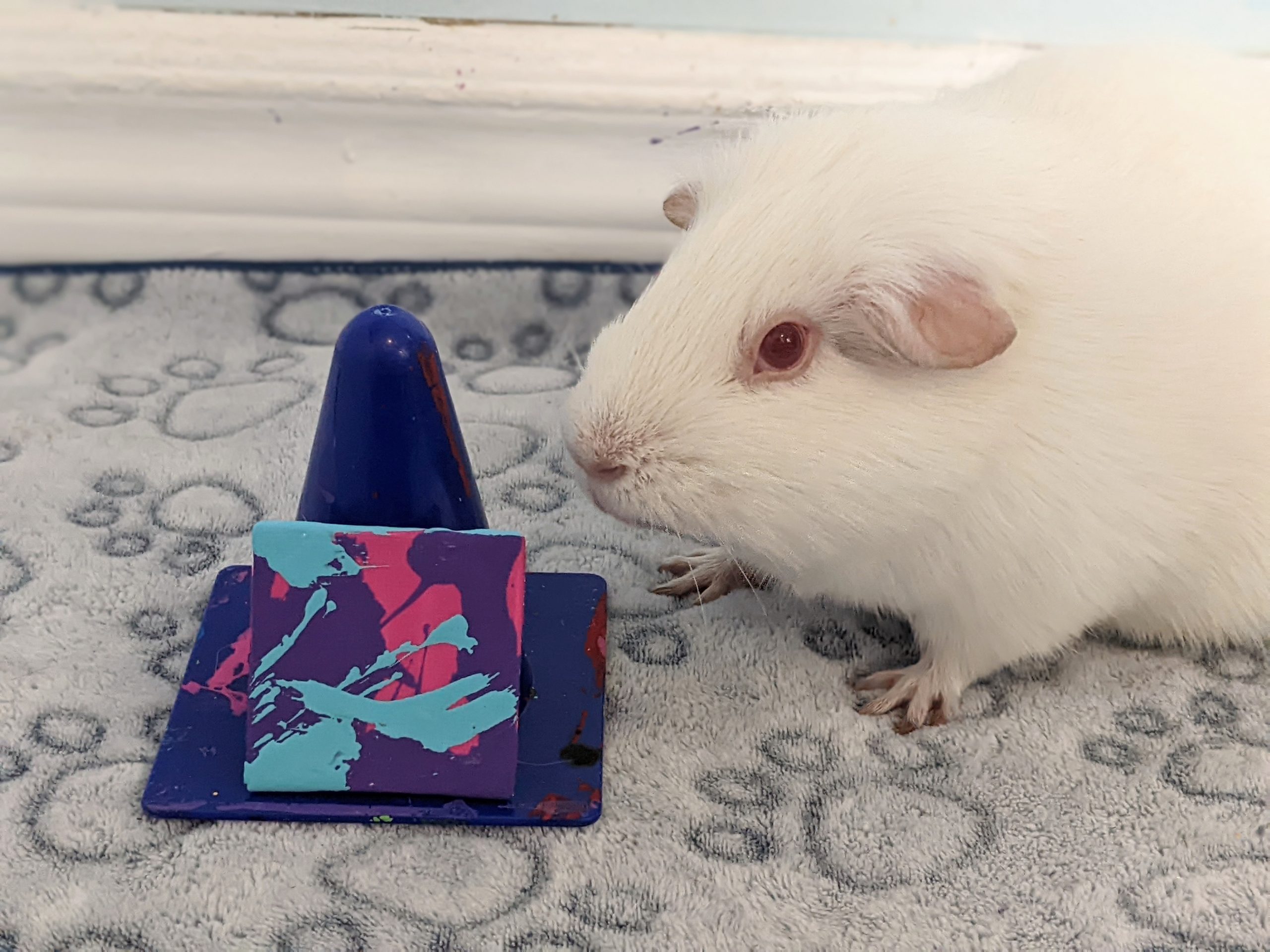 Willow had a rough start to life as an ex-lab piggy, but she has been living with me and her piggy friends over the last couple of years and has truly blossomed into an amazingly sweet and outgoing girl. I’m truly lucky to have her and show the world how colorful these sweet albino piggies are on the inside. ♥︎