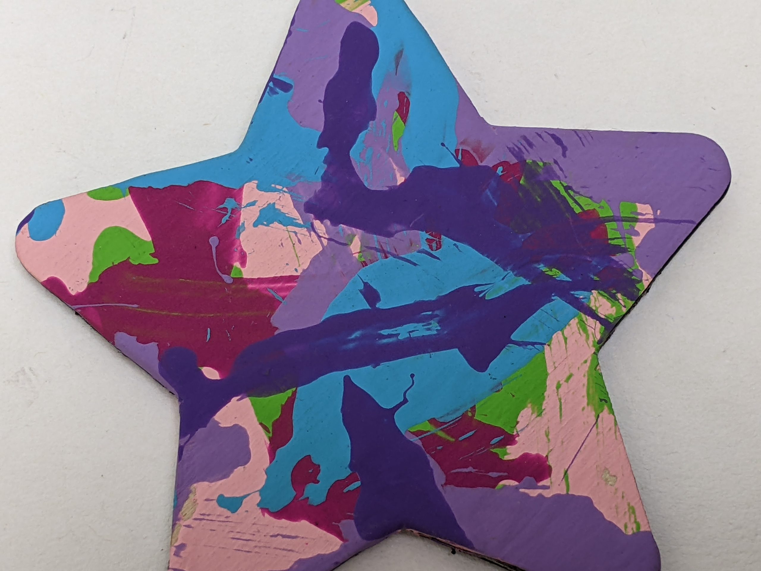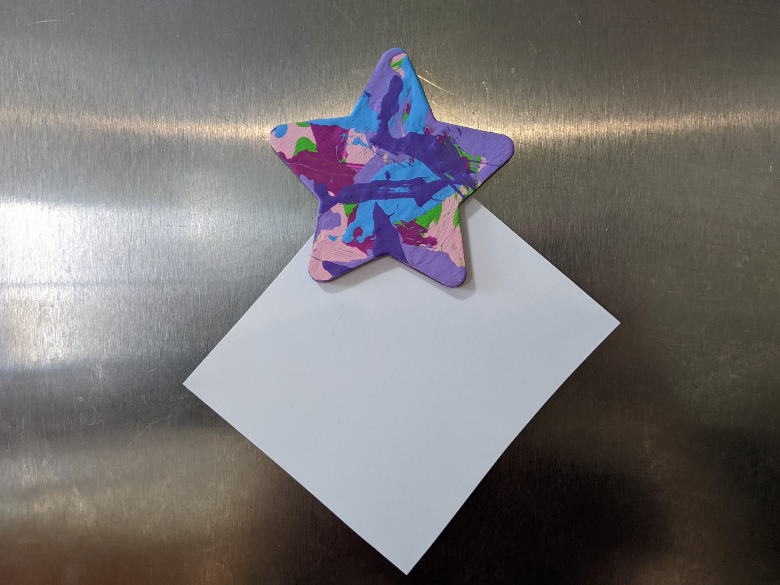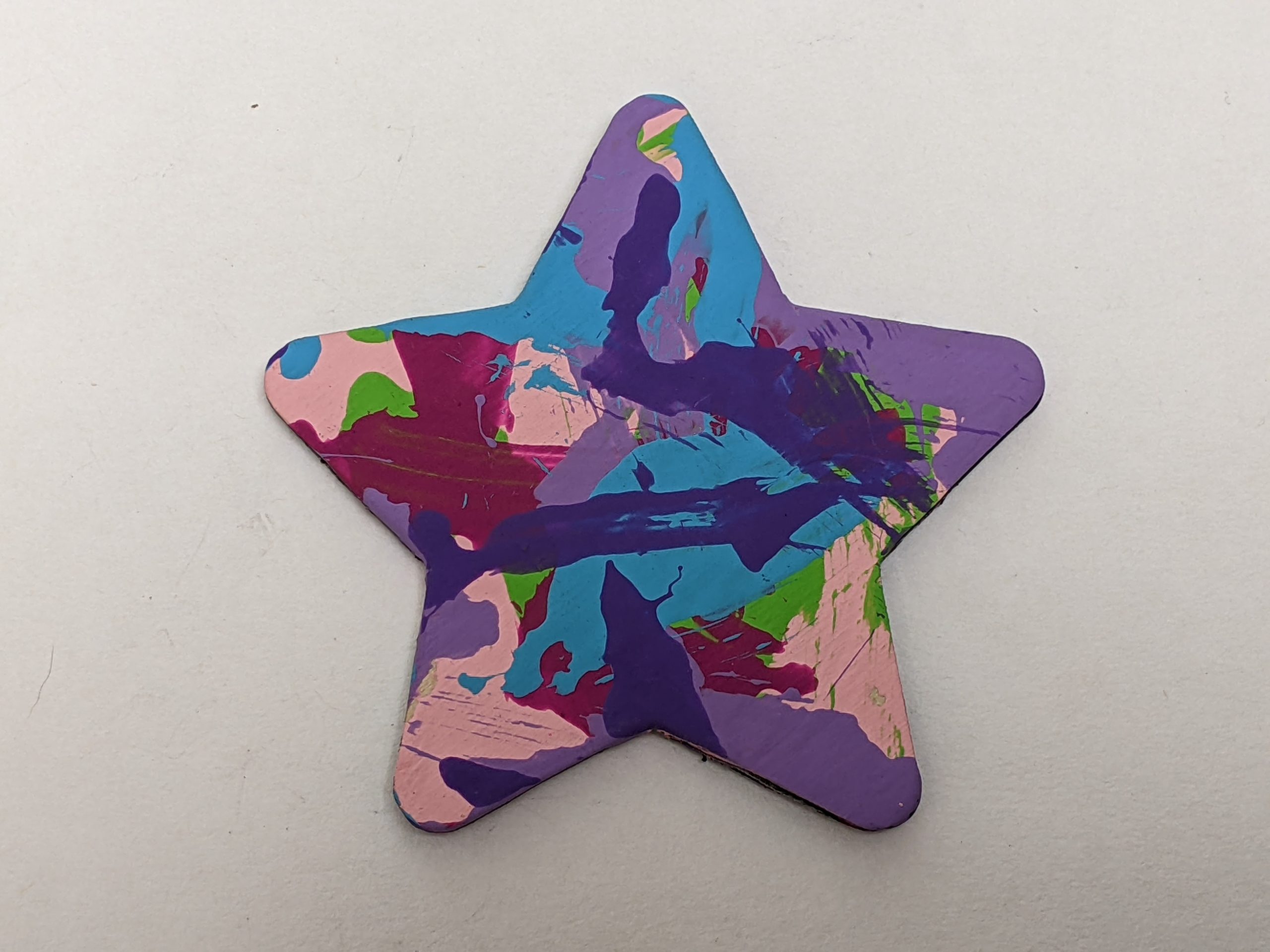 Magnet paintings are so cute and fun to display on the fridge, lockers, or any other metal surface. This cute star-shaped magnet features a colorful combo of pinks, purples, blue, and green and was made by Willow.